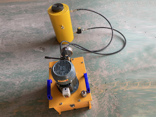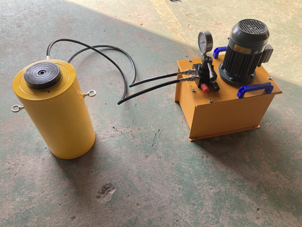5、使用時(shí)先將手動(dòng)泵的快速接頭與頂對(duì)接,然后選好位置,將油泵上的放油螺釘旋緊,即可工作。將放油螺釘旋松,油缸卸荷。