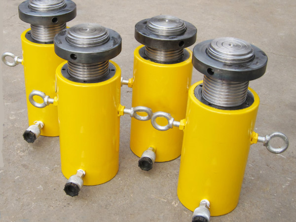 d)新的或久置的油壓千斤頂,因油缸內存有較多空氣,開始使用時,活塞桿可能出現微小的突跳現象,可將油壓千斤頂空載往復運動2-3次,以排除腔內的空氣。長期閑置的千斤頂,由于密封件長期不工作而造成密封件的硬化,從而影響油壓千斤頂的使用壽命,所以油壓千斤頂在不用時,每月要將油壓千斤頂空載往復運動2-3